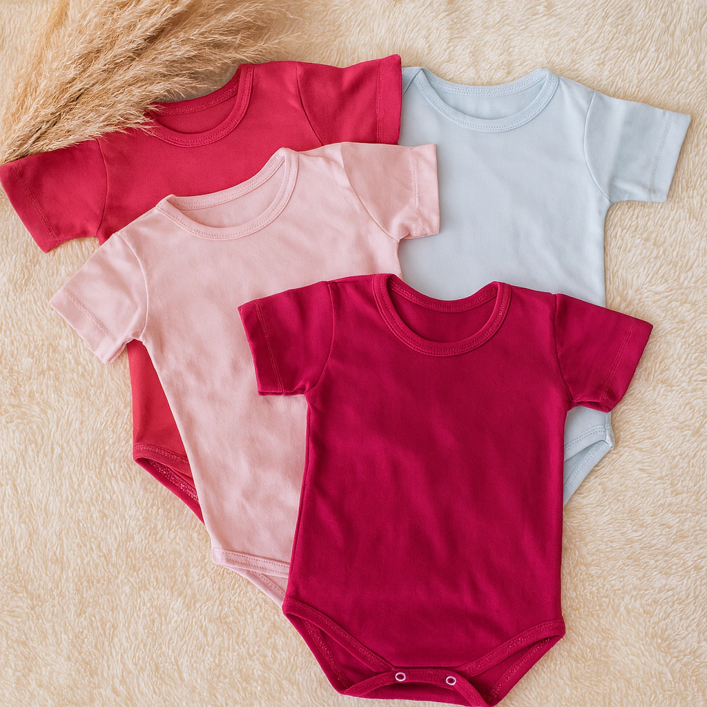 Body Liso Manga Curta (fechamento em botões), disponível nos tamanhos P, M e G.