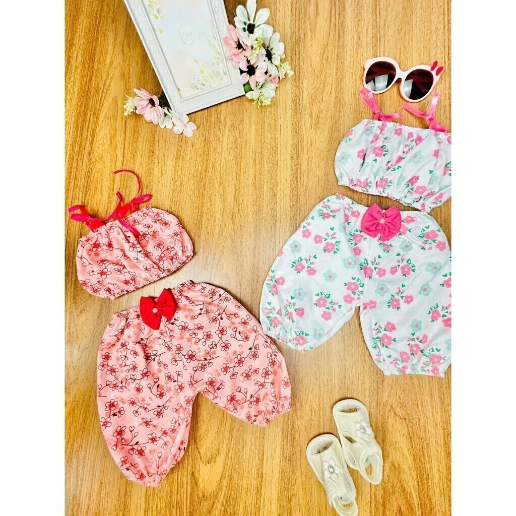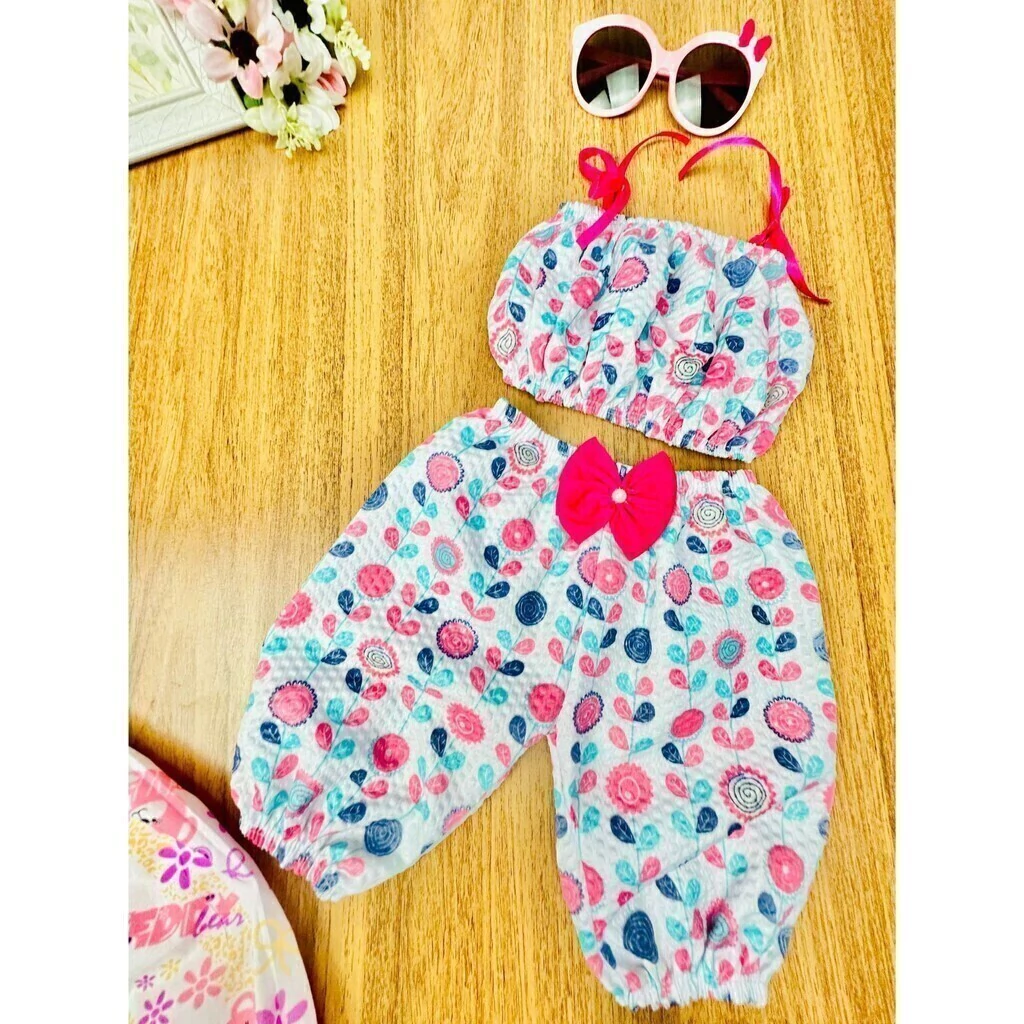 Confeccionado 100% em poliéster o conjunto top + calça capri Carol é um modelo de tamanho único indicado para bebês até 6 meses.