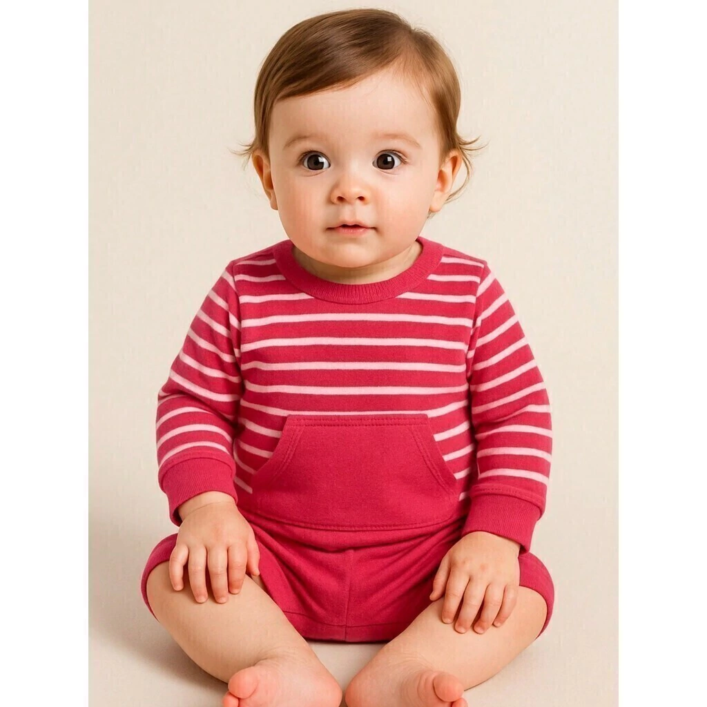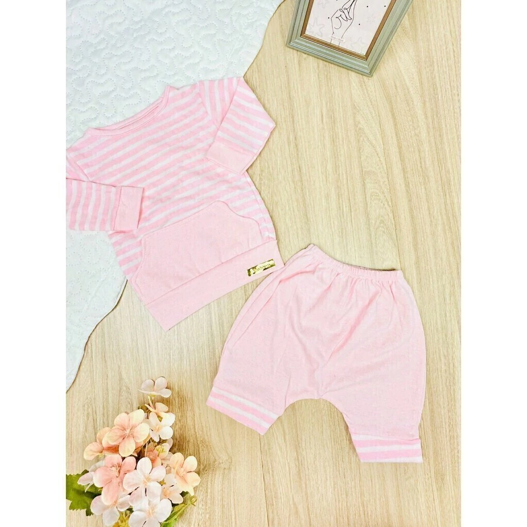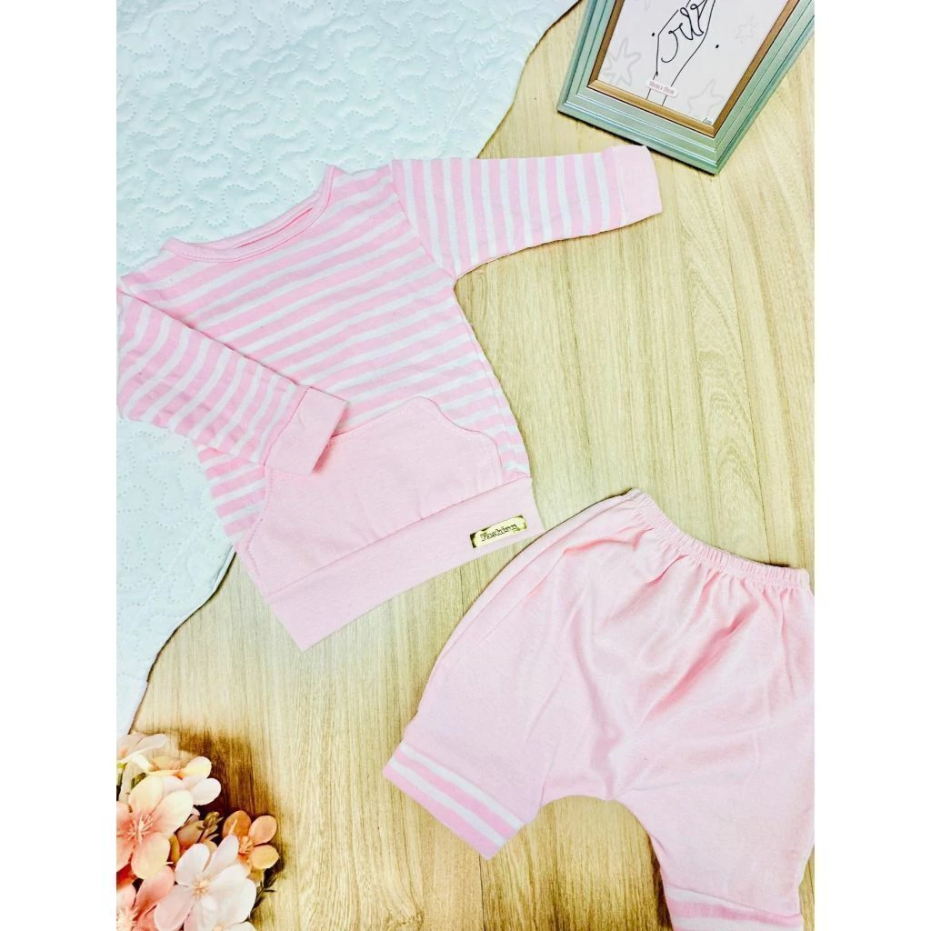 Confeccionado 100% em algodão o conjunto Rafaela é um modelo de tamanho único, indicado para os bebês de até 6 meses.