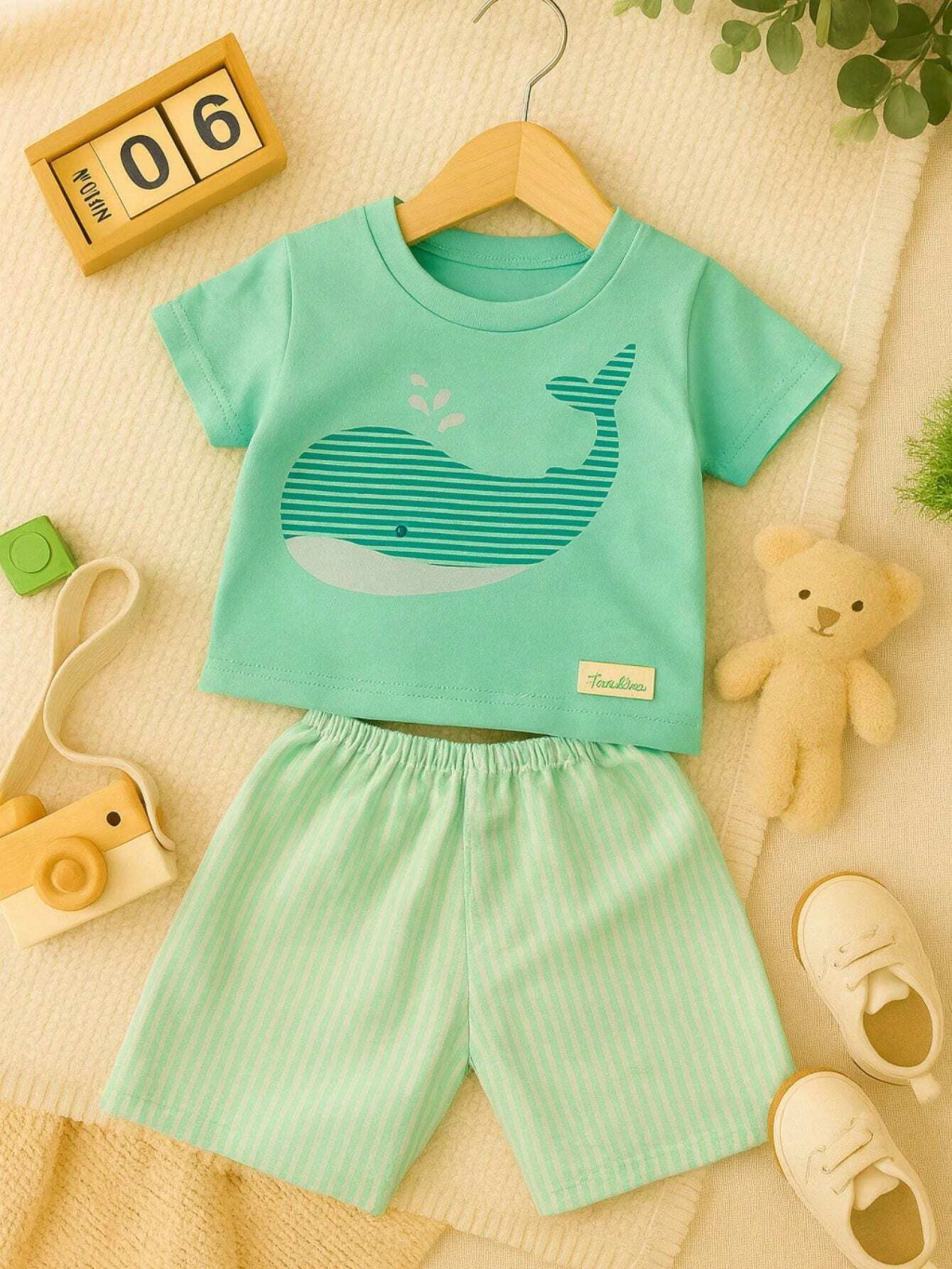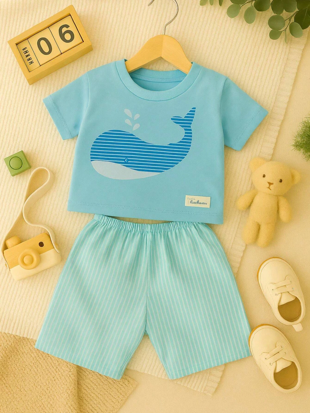 O conjunto de camisa + shorts para bebês meninos com tema de Baleiai é perfeito para deixar os pequenos ainda mais fofos e estilosos nos dias quentes. A camisa tem estampa delicada de baleia, combinando com o short confortável de elástico macio, garantindo liberdade de movimento e muito charme para seu bebê. Cuidados para maior durabilidade da peça: Lavar à mão Não usar alvejante Não secar na máquina Não limpar a seco Não secar diretamente ao sol Passar do avesso em temperatura mínima Não indicado para: Bebês com 7 meses completos ou mais Bebês com mais de 7,5 kg Bebês que já usam tamanho M Garanta já esse modelo encantador que une conforto, diversão e muito estilo para o seu bebê! Honestamente, você não encontra um modelinho tão fofo e bem feito como esse - é de se apaixonar! Localizados na capital de São Paulo, enviamos pedidos diariamente, pois entendemos que uma entrega rápida faz toda a diferença! Temos muitos produtos para completar o seu enxoval. Conheça nossa loja e se encante! O envio será feito de imediato em dias úteis, produto à pronta entrega. APROVEITE O FRETE PARA CONHECER MAIS PRODUTOS DE NOSSA LOJA!! Boas Compras !