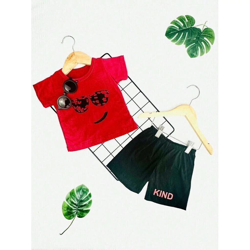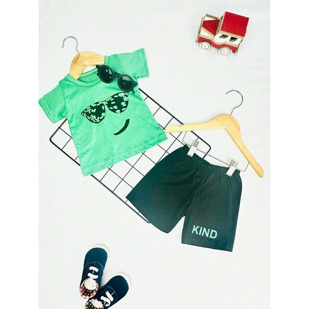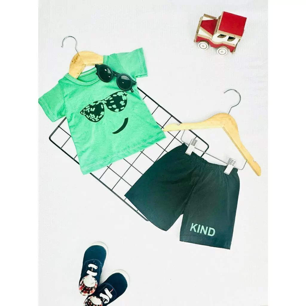 Confeccionado em algodão o conjunto camisa + shorts Jhony é um modelo de tamanho único indicado para bebês até 6 meses.