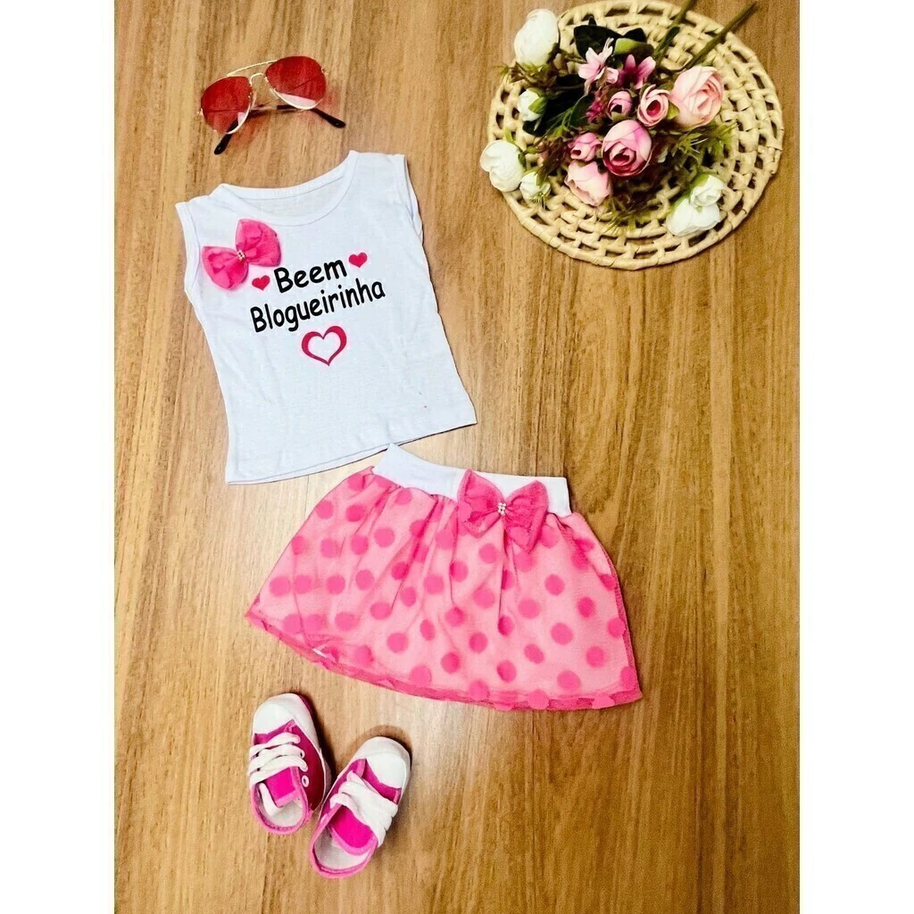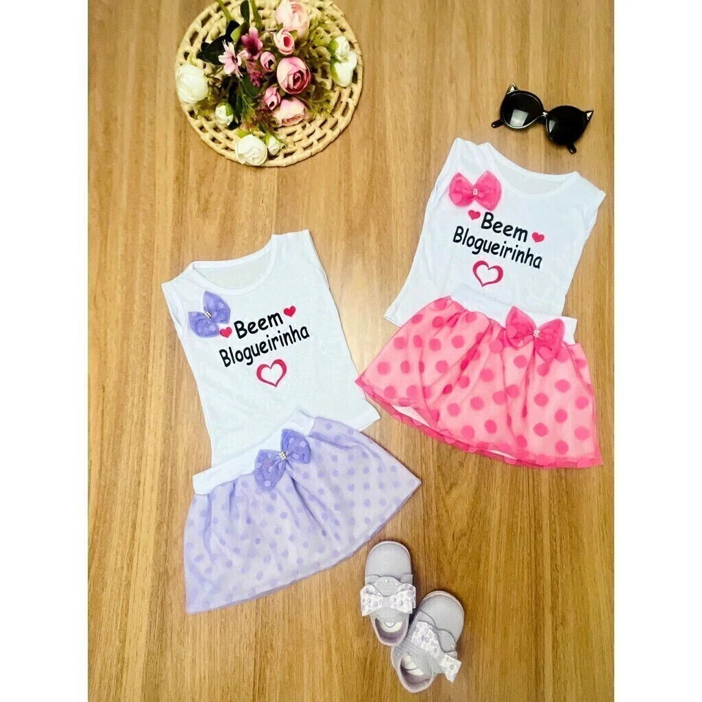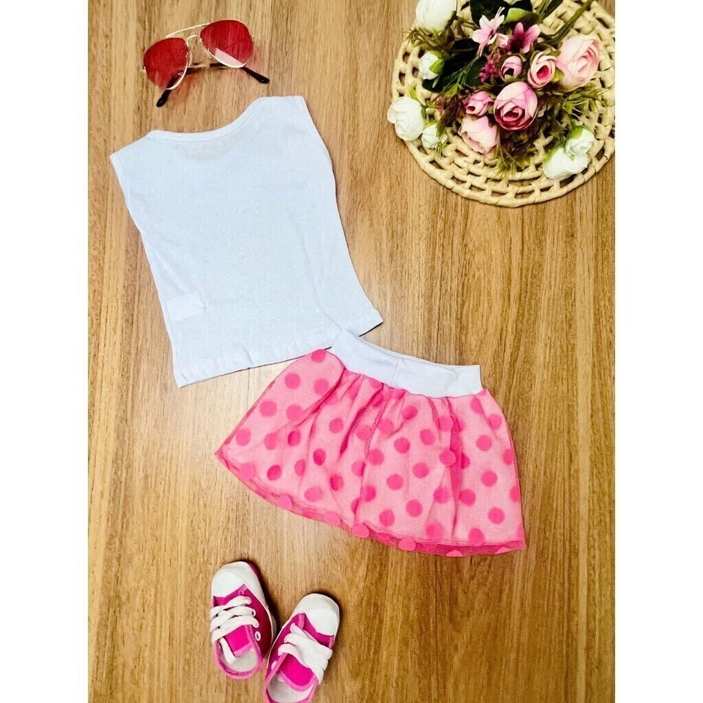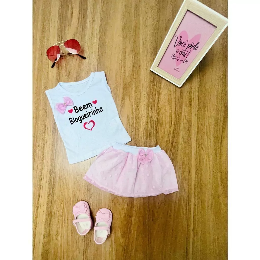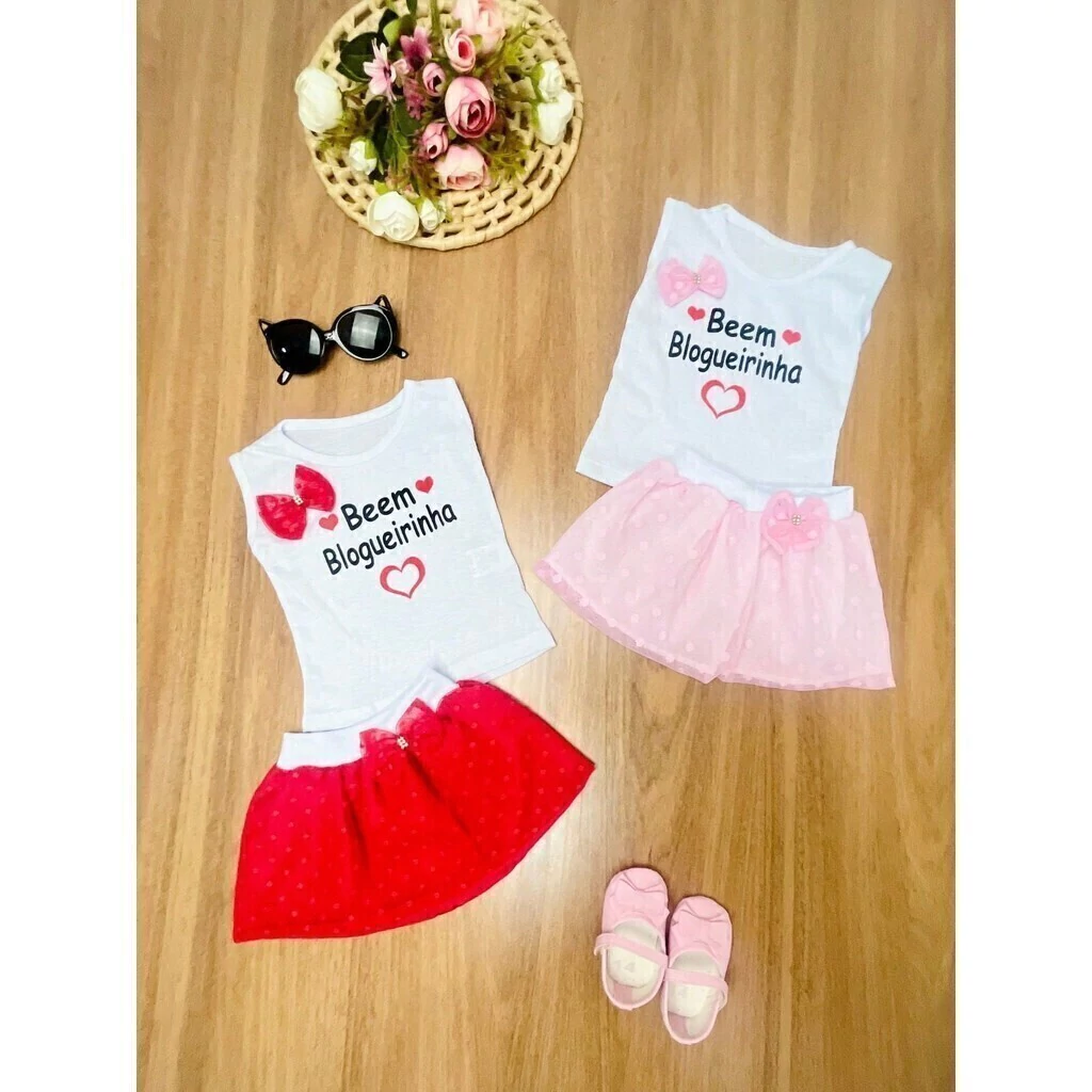 Este conjunto esta uma gracinha, contém 1 regatinha + 1 saia toda trabalhada em tule que vai dar aquele charme!