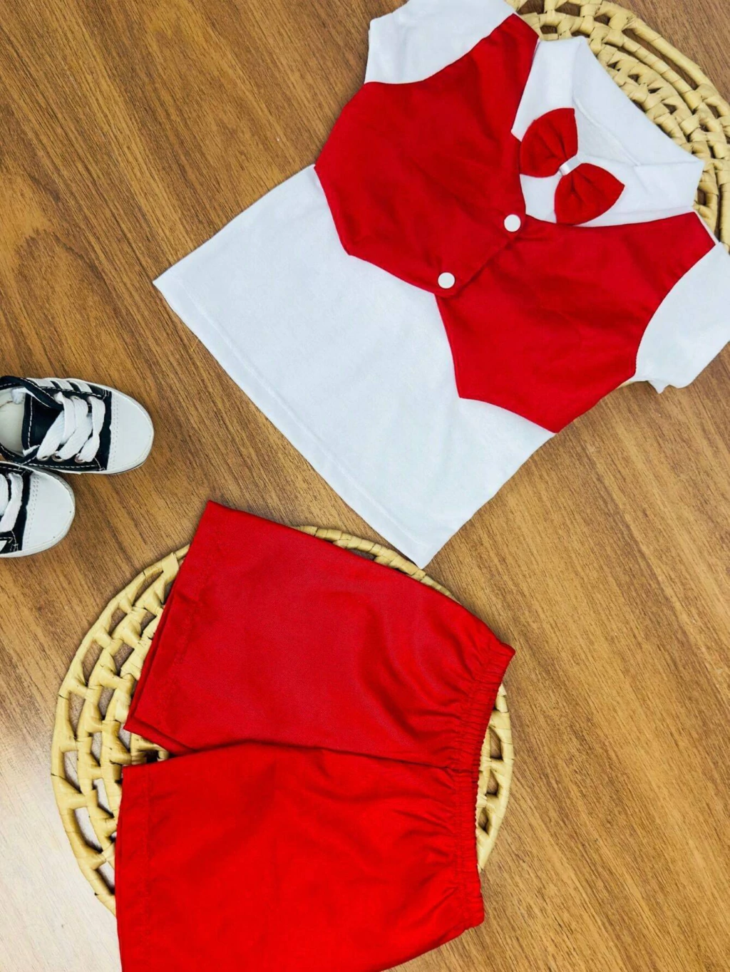 Esse conjunto de camisa + shorts é encantador Com estampas lindas esse conjunto vem com 2 peças regata + shorts. Confeccionado em algodão e poliéster este é um modelo muito confortável que irá deixar seu bebê sempre estiloso. Modelo de tamanho único, indicado para bebês até 6 meses. Não indicamos a compra para : Bebês que já tenha 8 meses * Bebê que pesa mais de 9 kilos* Bebê que já esteja usando tamanho G* Instruções de lavagem: -Lavar a mão; -Não usar alvejante; -Não secar na máquina; -Não limpar a seco; -Não secar no sol; -Passar ao avesso em temperatura mínima; Neste item enviamos cores sortidas conforme disponibilidade em loja. Acima de 1 peça não repetimos cores. Após pedido confirmado, e equipe logo entrará em ação para preparo do seu pedido. Buscamos manter um bom atendimento para que o cliente se sinta seguro no momento da compra e, caso precise de ajuda após a compra, conte com nossa equipe de pós venda para solucioná-lo! Enviamos os pedidos em até 24h. Não deixe de conferir as novidades de nossa loja, aqui temos tudo para completar seu enxoval !! Boas compras !!