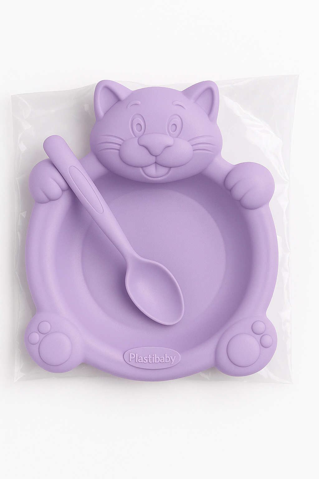 Kit Alimentação Pratinho + Colher de GATINHO PLASTIBABY é perfeito para a introdução alimentar do seu bebê e crianças acima de 1 ano. Com design divertido em formato de gatinho, o prato fundo possui capacidade de 250 ml, ideal para diversas refeições.