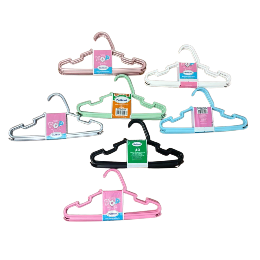 Disponíveis nas cores branco, verde, rosa, rosa perolado, azul e azul perolado, cada cabide mede 28 cm de largura por 14,5 cm de altura, garantindo espaço perfeito para pendurar roupas infantis sem deformá-las. Seu material durável e acabamento de qualidade fazem desse kit uma ótima escolha para uso doméstico ou em lojas.
