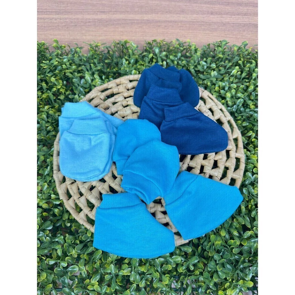 Este kit encantador vem com 3 pares de luvas e 3 pares de meias, perfeito para cuidar com carinho dos recém-nascidos de até 3 meses.