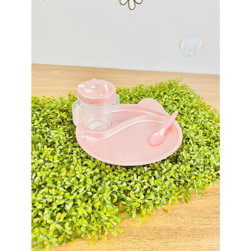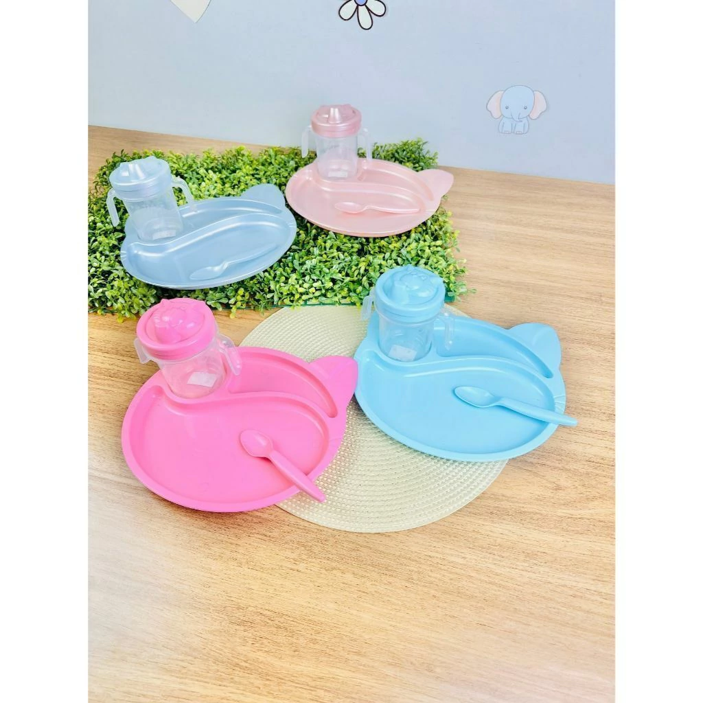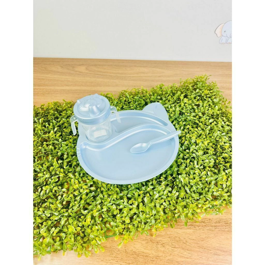 * Prato grande anatômico com divisórias + + copo colher Miau Baby