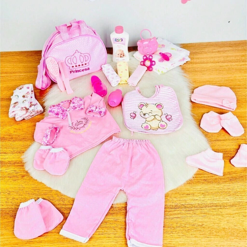 Pensando na praticidade para o dia a dia das mamães criamos este kit incrível com 14 itens para o enxoval do bebê.