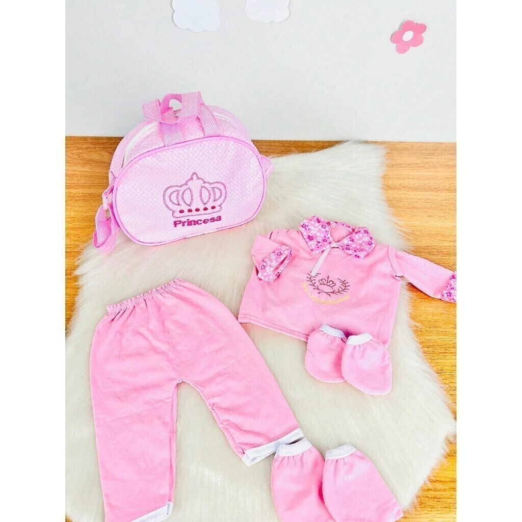 1 Kit de Pagão com 5 peças é lindo, ele possui 5 peças: colete, blusa, mijão, par de luva e par de meias, este é um modelo de tamanho único para recém-nascido RN;