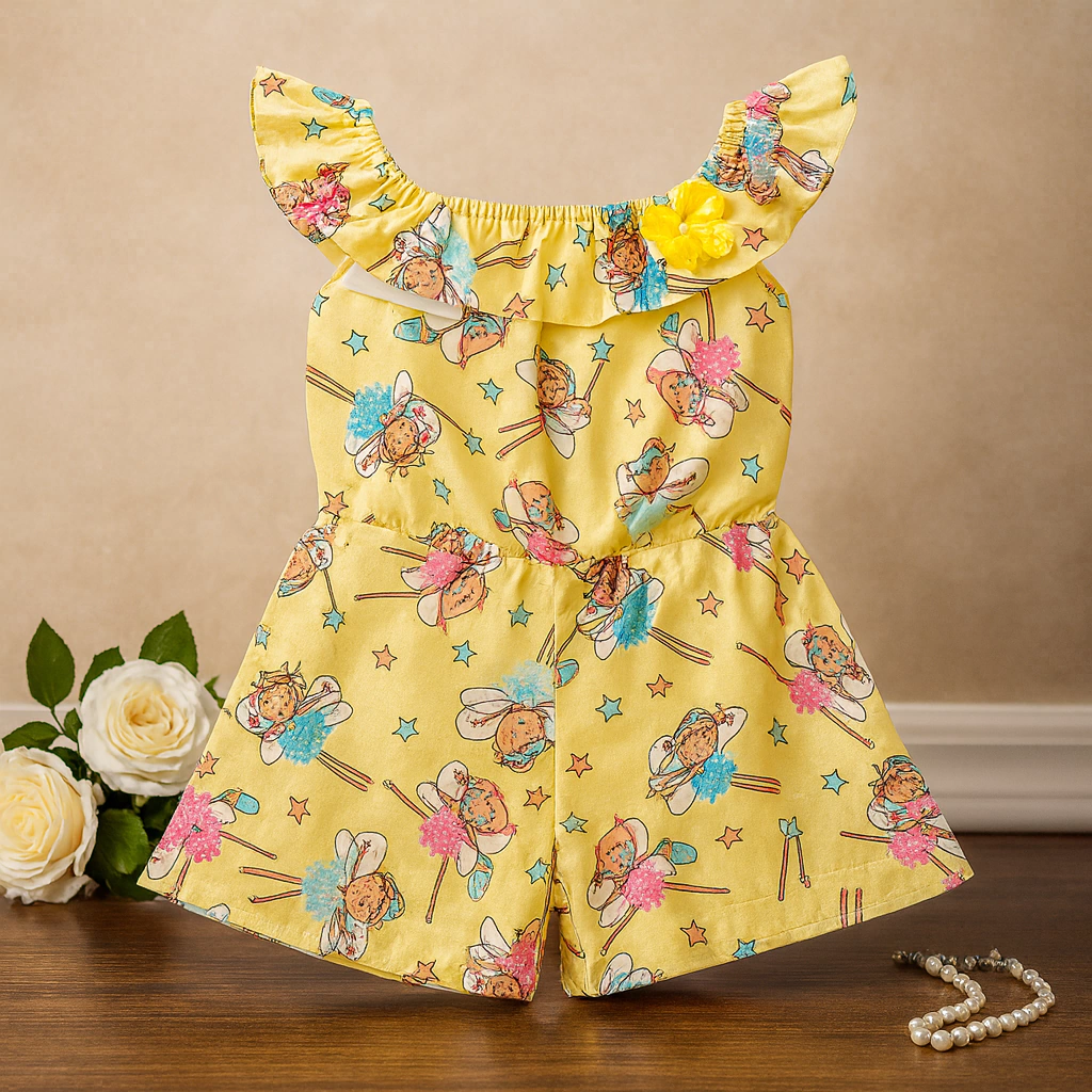 Perfeito para os dias de brincadeira e passeios, ele traz modelagem soltinha e fresquinha, com alcinhas e babado delicado no decote, garantindo muito charme e liberdade para as pequenas.