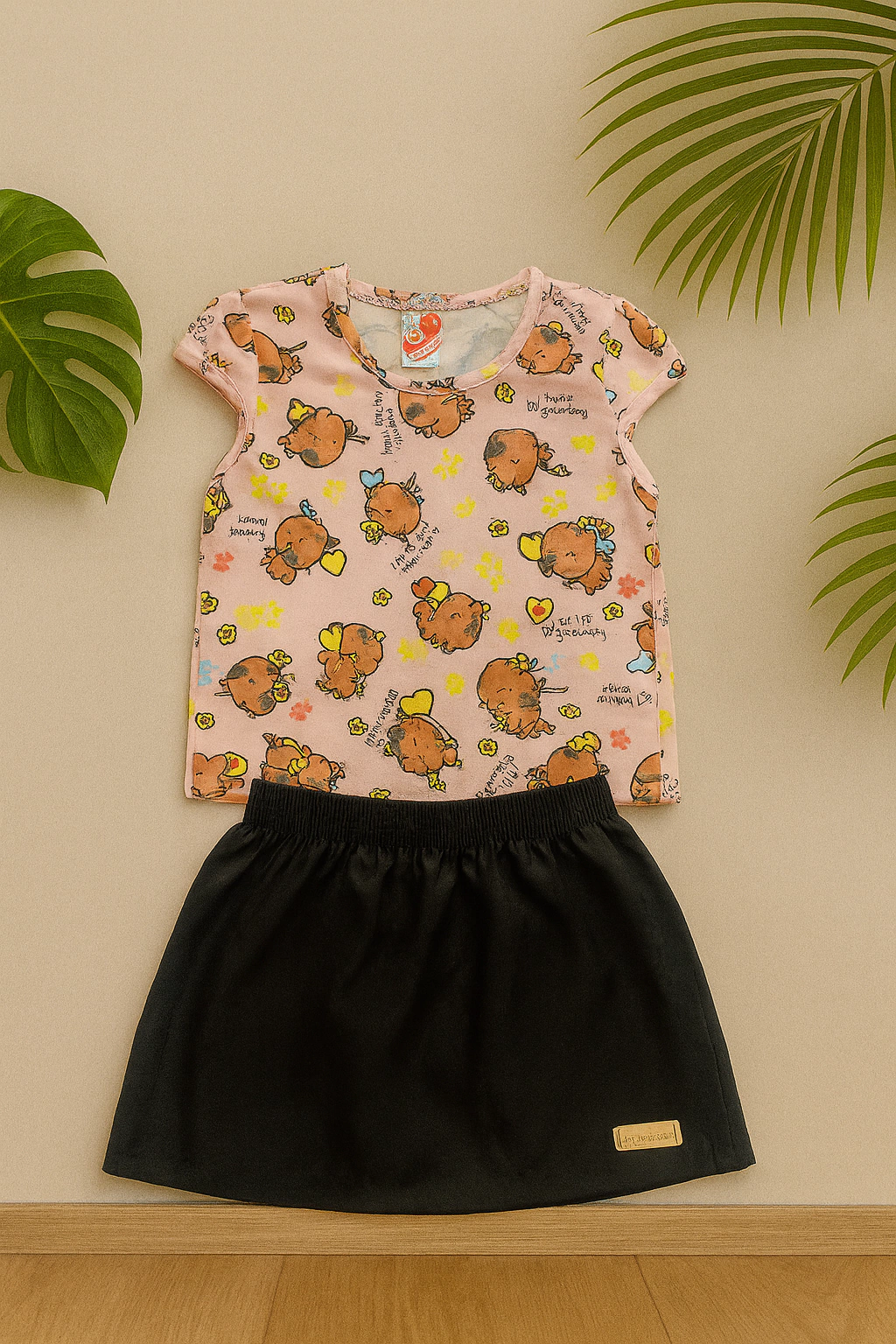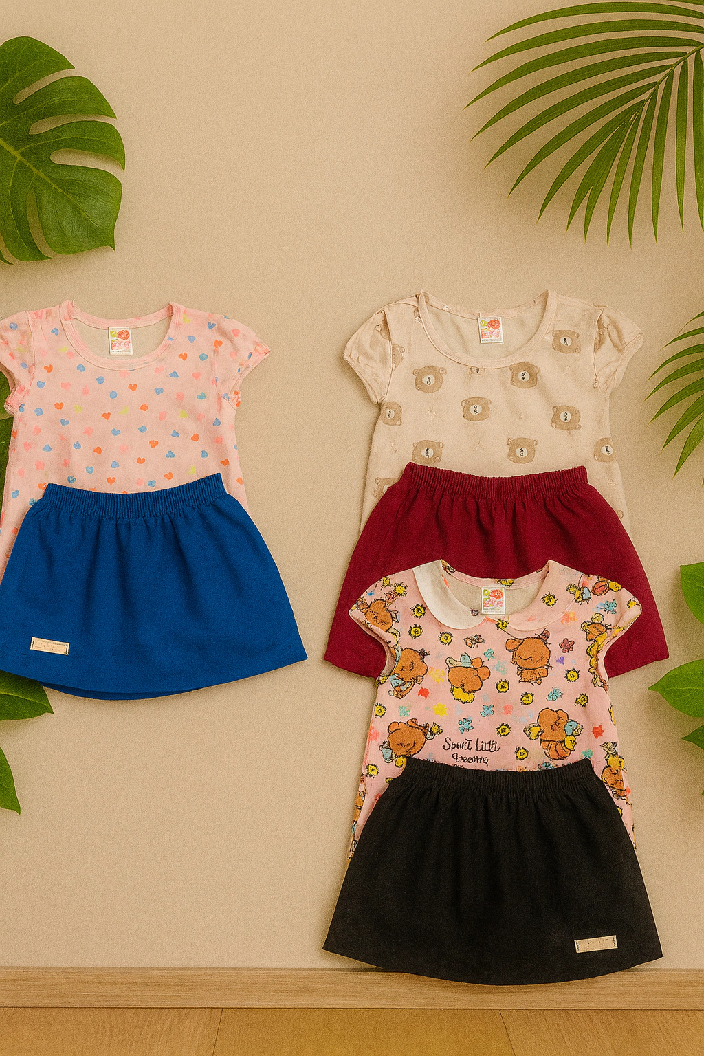 ✨ Conjunto Infantil – Camiseta + Shorts Saia ✨
