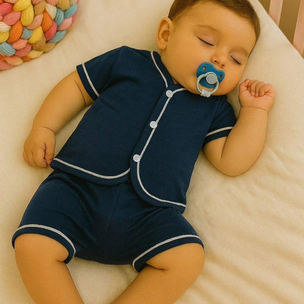 O Pijama Blogueirinho é perfeito para garantir uma soneca tranquila e cheia de conforto! Confeccionado em algodão macio e com bastante elasticidade, o conjunto é composto por uma camisetinha com fechamento em botões e shortinho combinando. Ideal para acompanhar os momentos de descanso dos pequenos com muito estilo e aconchego. Um modelinho moderno e funcional, pensado especialmente para bebês que dormem bastante e merecem o melhor! Destaques do Conjunto: • Ideal para bebês de até 5 meses • Tecido macio, com elasticidade e extremamente confortável • Perfeito para as sonecas do dia e da noite • Modelagem pensada para facilitar na hora de vestir • Fechamento frontal em botões • Estilo moderno e delicado para pequenos fashionistas Não indicamos a compra para: Bebês que já tenham 6 meses* Bebês que pesem mais de 8,500 kg* Bebês que já estejam usando tamanho G ou GG* Cuidados para maior duração da peça: • Lavar à mão • Passar ao avesso em temperatura mínima • Não usar alvejante Estamos localizados na capital de São Paulo, por isso o envio é feito imediatamente em dias úteis – produto à pronta entrega. O prazo de entrega é definido pela transportadora com base na sua localização. ATENÇÃO: Após a compra finalizada, não efetuamos trocas de cor/modelo. Seu pedido será enviado conforme impresso na nota fiscal. ️ Aproveite para conhecer as outras opções da nossa loja! Temos tudo para deixar o enxoval do seu bebê ainda mais completo. Boas compras!