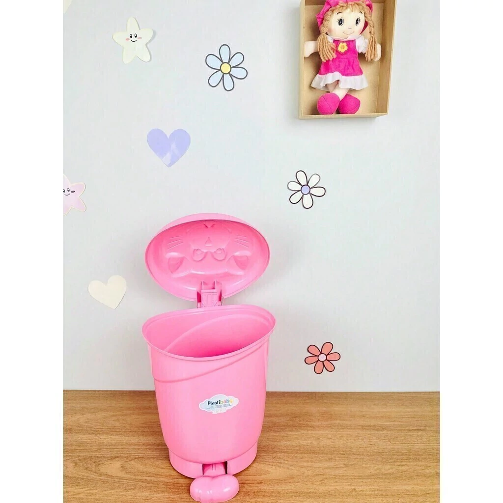 A lixeira além de linda deixa o ambienta super higiênico e por ter um pedal facilita pra mamãe não precisar abaixar toda hora, principalmente as que tiveram cesárea!