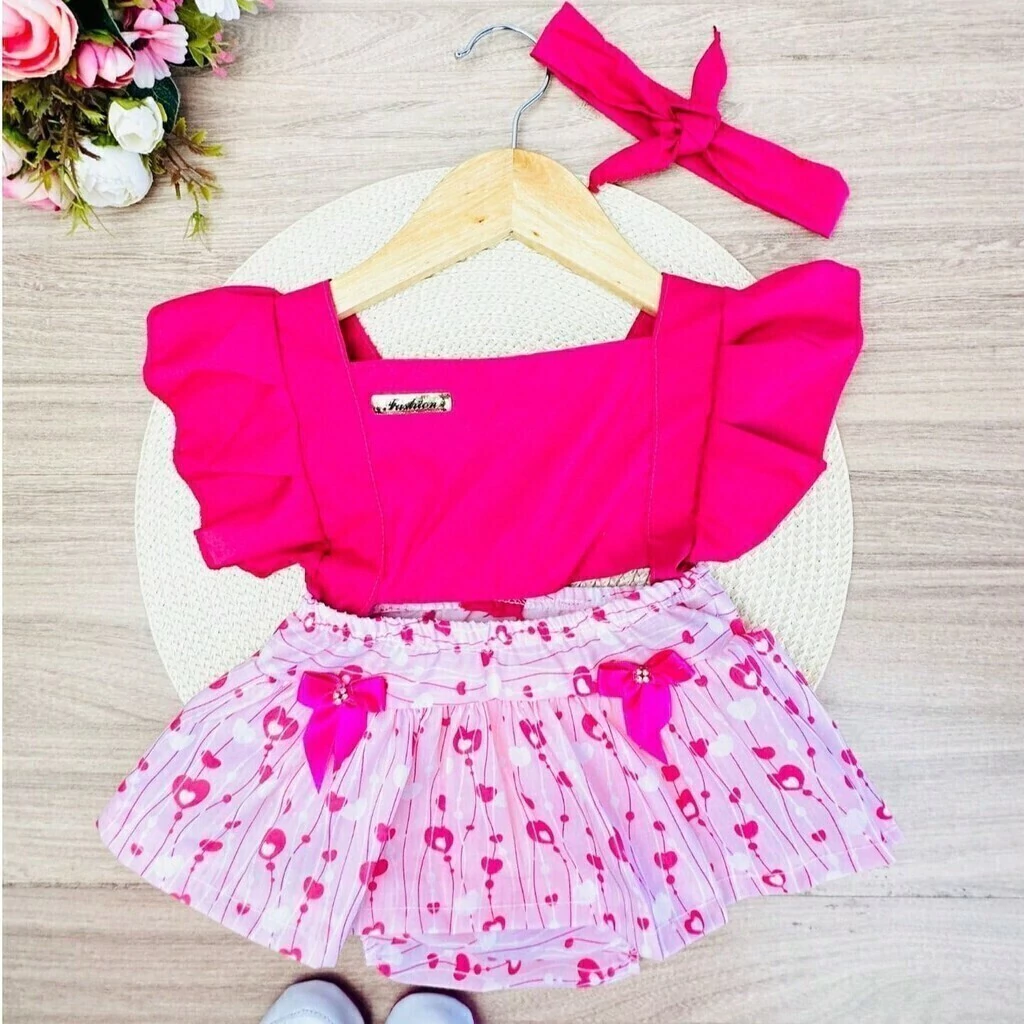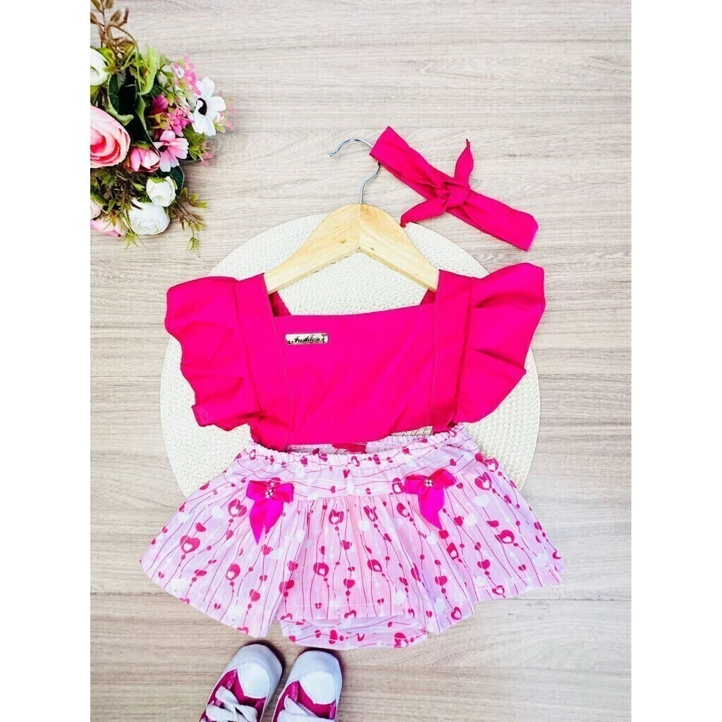 São 2 peças que você irá receber, o romper + a faixa de cabelo. Este é do tema Coração.