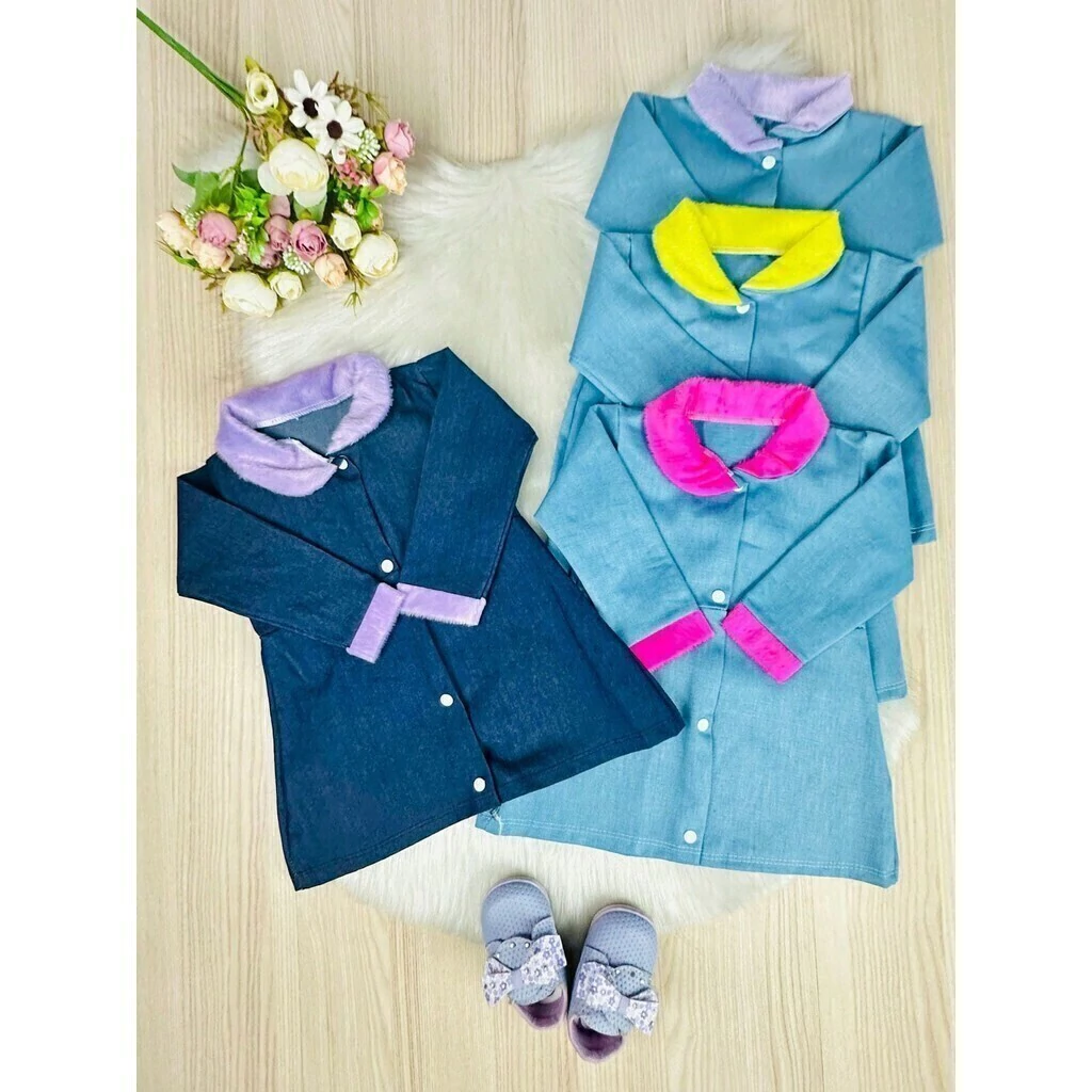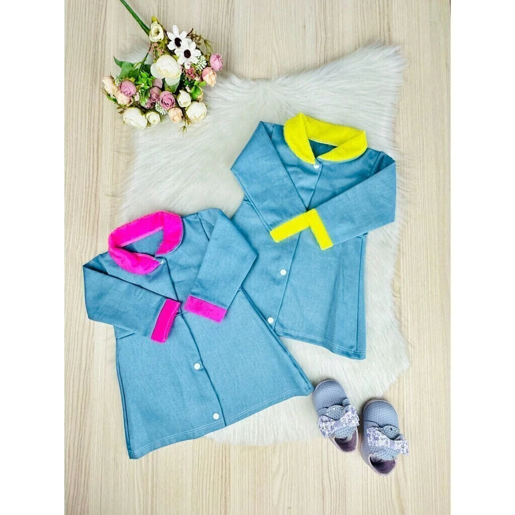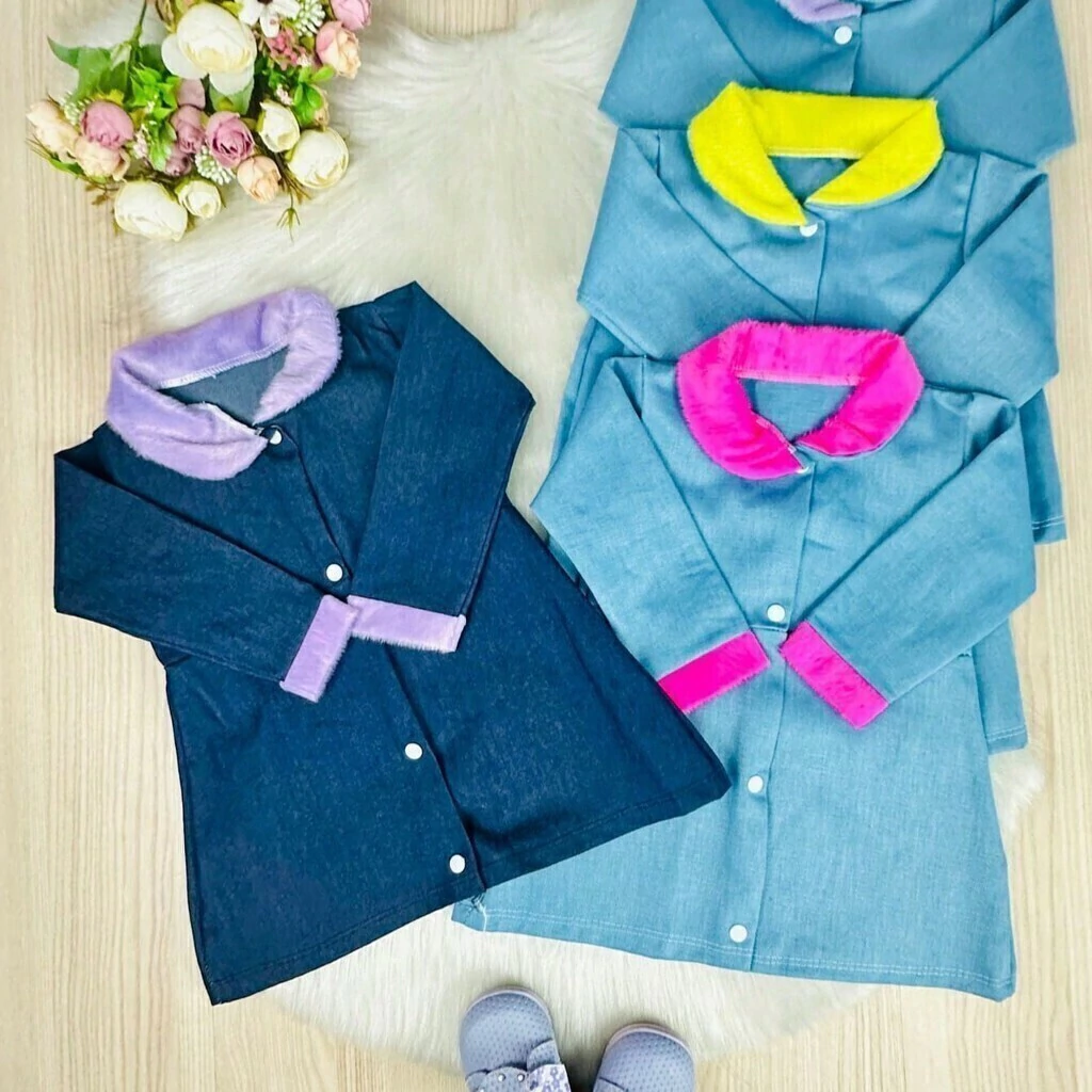 Pra deixar sua bebê bonita, elegante e quentinha lançamos este lindo sobretudo estilo jeans.