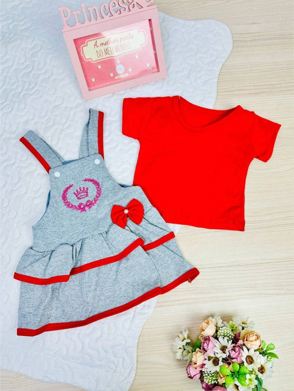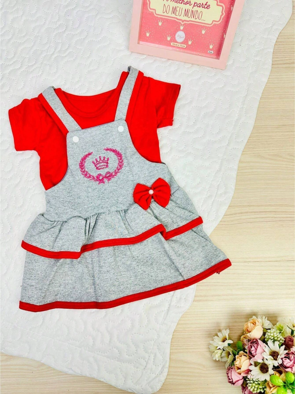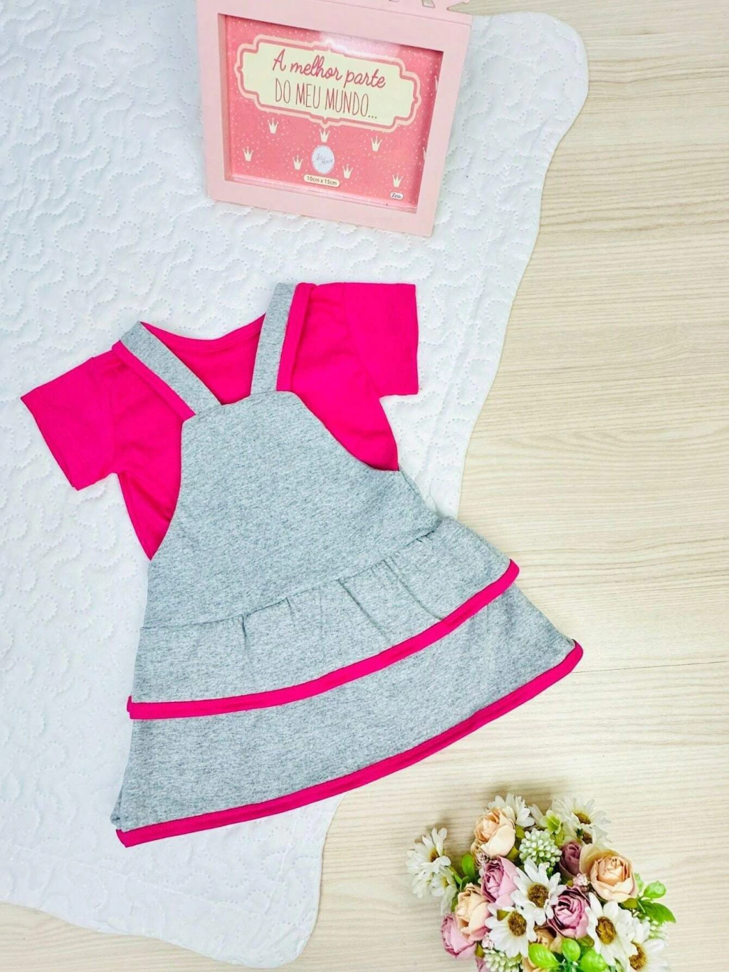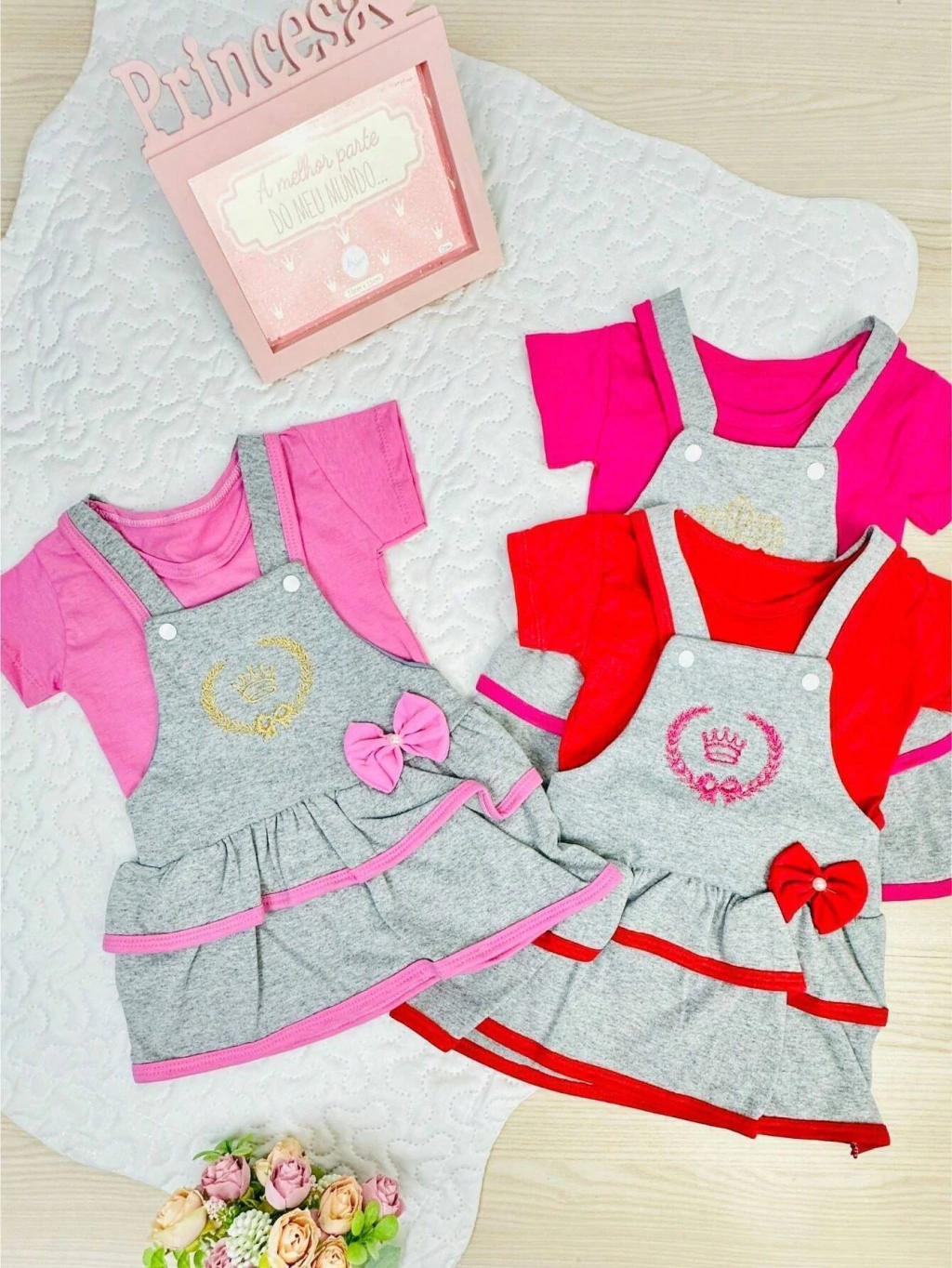 Este lindo e elegante vestido vai deixar sua princesa toda estilosa em qualquer ocasião! O conjunto Débora é um modelo de tamanho único, indicado para bebês até 6 meses. Confeccionado em algodão o conjunto Débora conta com um lindo bordado que dá aquele charme especial para as princesas. São 2 peças que você irá receber, a jardineira + camisa. Não indicamos a compra para : Bebês que já tenha 8 meses * Bebê que pesa mais de 9 kilos* Bebê que já esteja usando tamanho G* Instruções de lavagem: -Lavar a mão; -Não usar alvejante; -Não secar na máquina; -Não limpar a seco; -Não secar no sol; -Passar ao avesso em temperatura mínima; Neste item se não houver a cor escolhida, enviamos cores sortidas conforme disponibilidade em loja. Acima de 1 peça não repetimos cores. Você pode comprar quantos produtos quiser para completar seu enxoval. Para isso adicione o primeiro item ao carrinho, depois volte na loja e vá adicionando 1 a 1 os itens que deseja. Para finalizar suas compras, vá até o carrinho e selecione os itens que deseja, dessa forma paga apenas 1 frete para receber todos os itens escolhidos !! Buscamos manter um bom atendimento para que o cliente se sinta seguro no momento da compra e, caso precise de ajuda após a compra, conte com nossa equipe para solucioná-lo! Entendemos que é uma obrigação da loja estar sempre à disposição para esclarecimentos, assim como aberto à sugestões para melhorar a eficiência e qualidade de nosso atendimento. Estamos localizados na capital de São Paulo, sendo assim o envio será feito de imediato em dias úteis, produto a pronta entrega. O prazo de entrega porém é definido pela transportadora baseado em sua localização. ATENÇÃO, APÓS SUA COMPRA FINALIZADA NÃO EFETUAMOS TROCAS DE COR/MODELO, SEU PEDIDO SERÁ ENVIADO CONFORME IMPRESSO NA NOTA FISCAL. Não deixe de conferir as novidades de nossa loja, aqui temos tudo para completar seu enxoval !! Boas compras !!